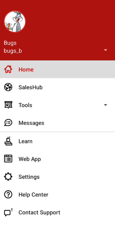 - Log in to your account by launching the SalesRabbit app on your Android device. Click on the three stacked lines in the top left-hand corner. Then click on the 'SalesHub' button.