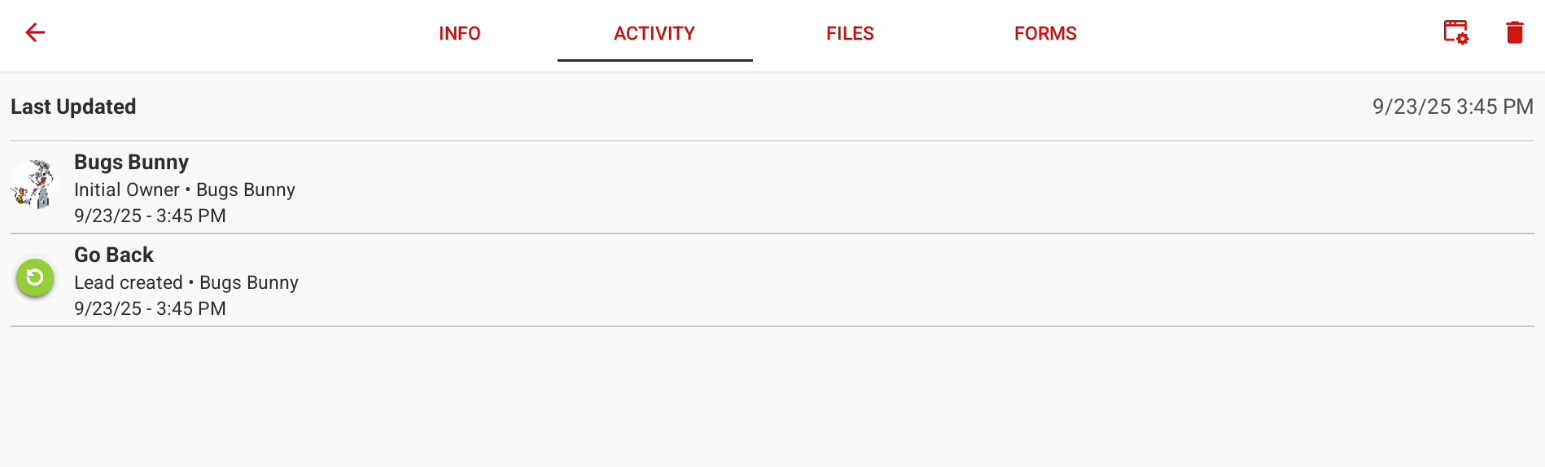 This article will cover how to access the activity tab within a lead.