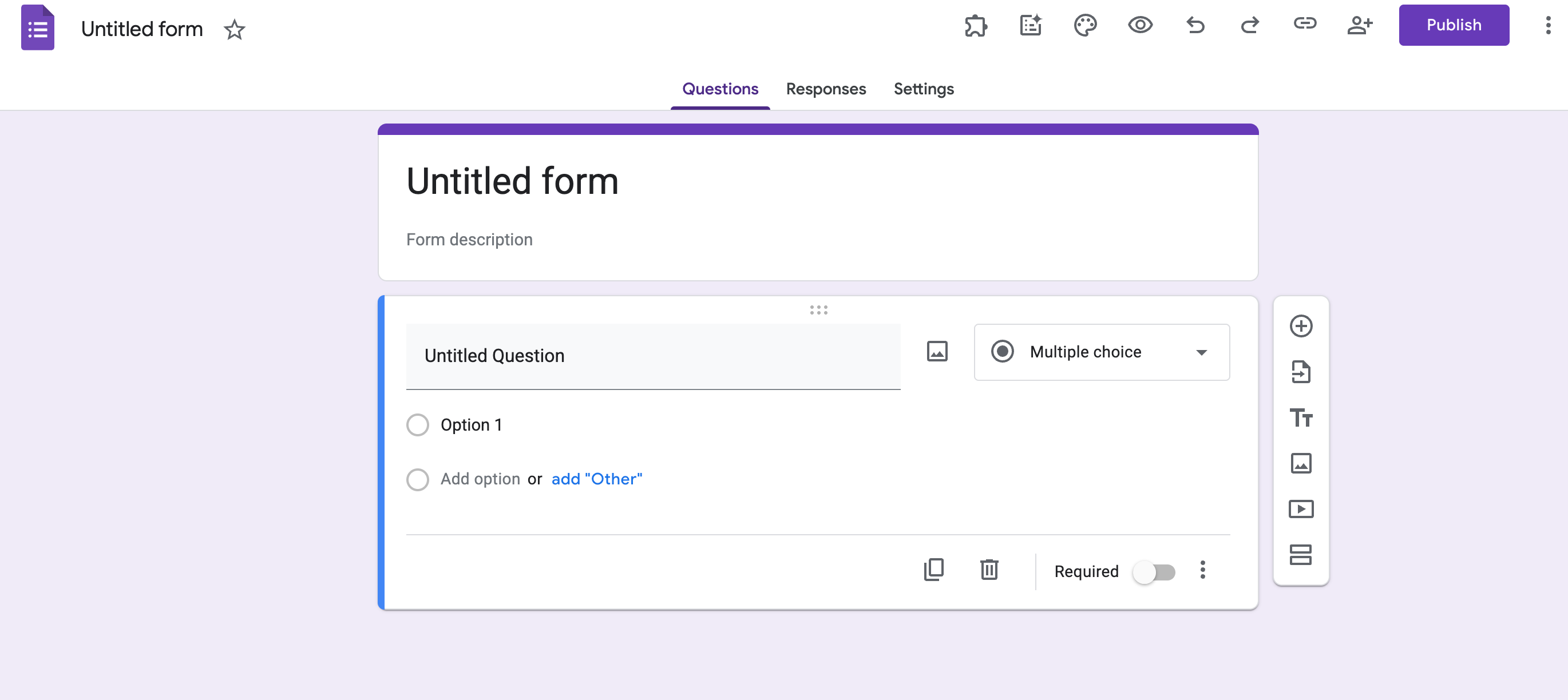 - To begin, open a new Google Form from your google Docs.