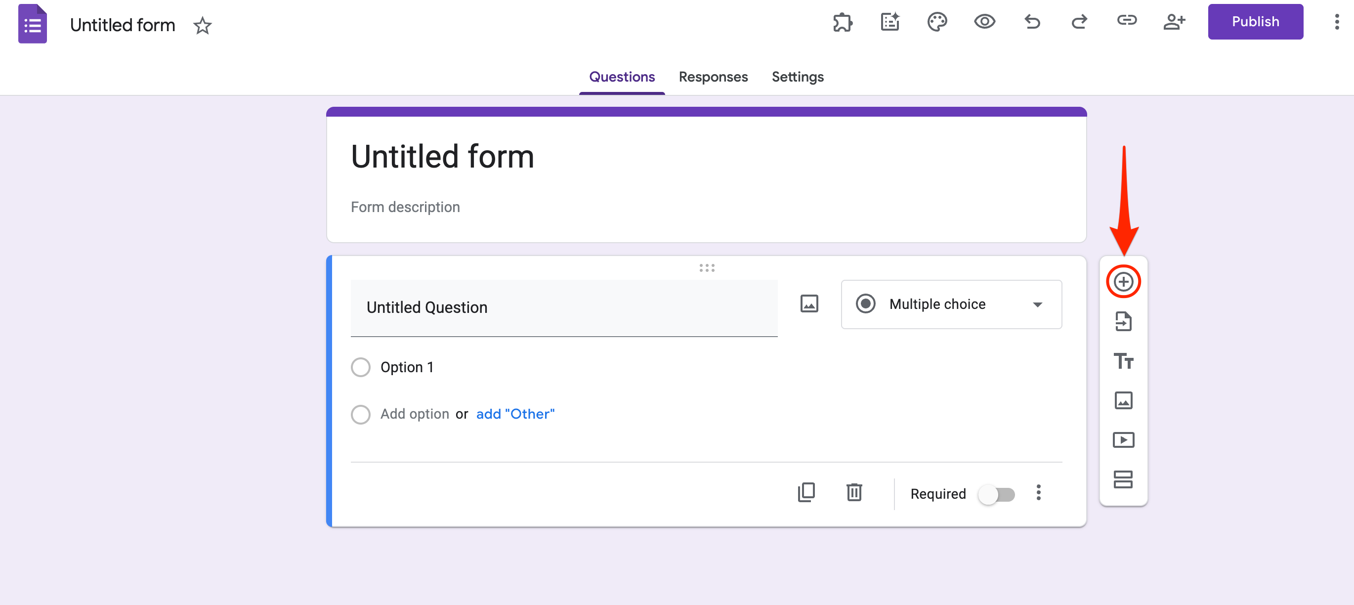 - Next, click "Untitled Question" and input the title for the first field on your form (i.e. First Name, Last Name, Address...).