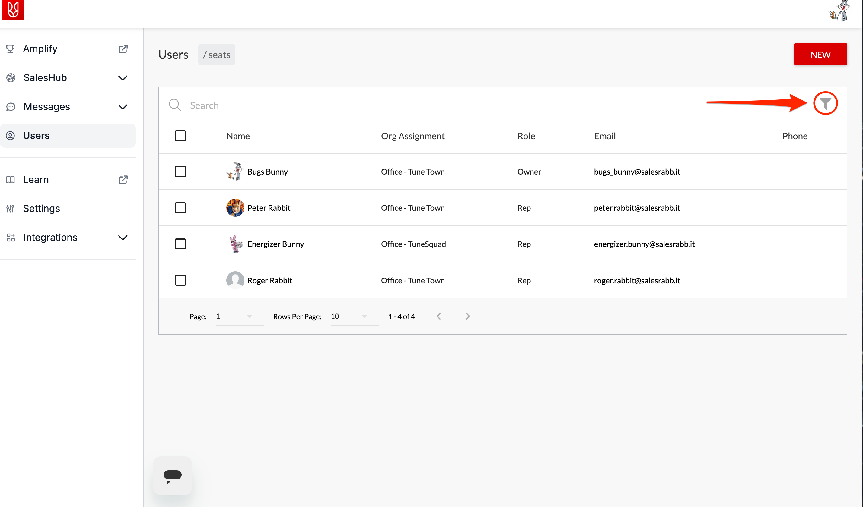 • To view your inactive users,  you will have to adjust the filter. Click on the filter button.