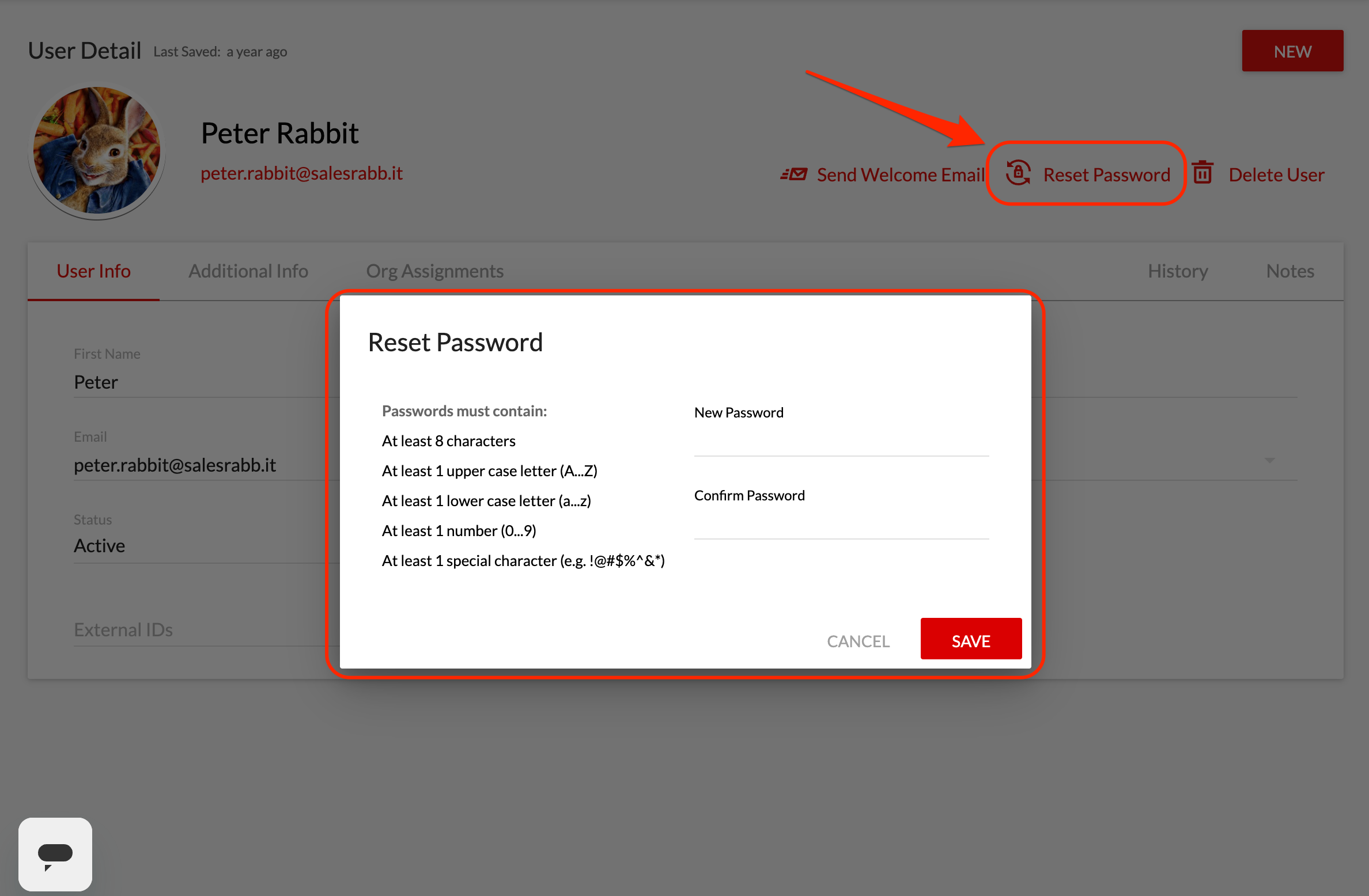 This article will cover how to reset a User's password in the Web app for SalesRabbit.