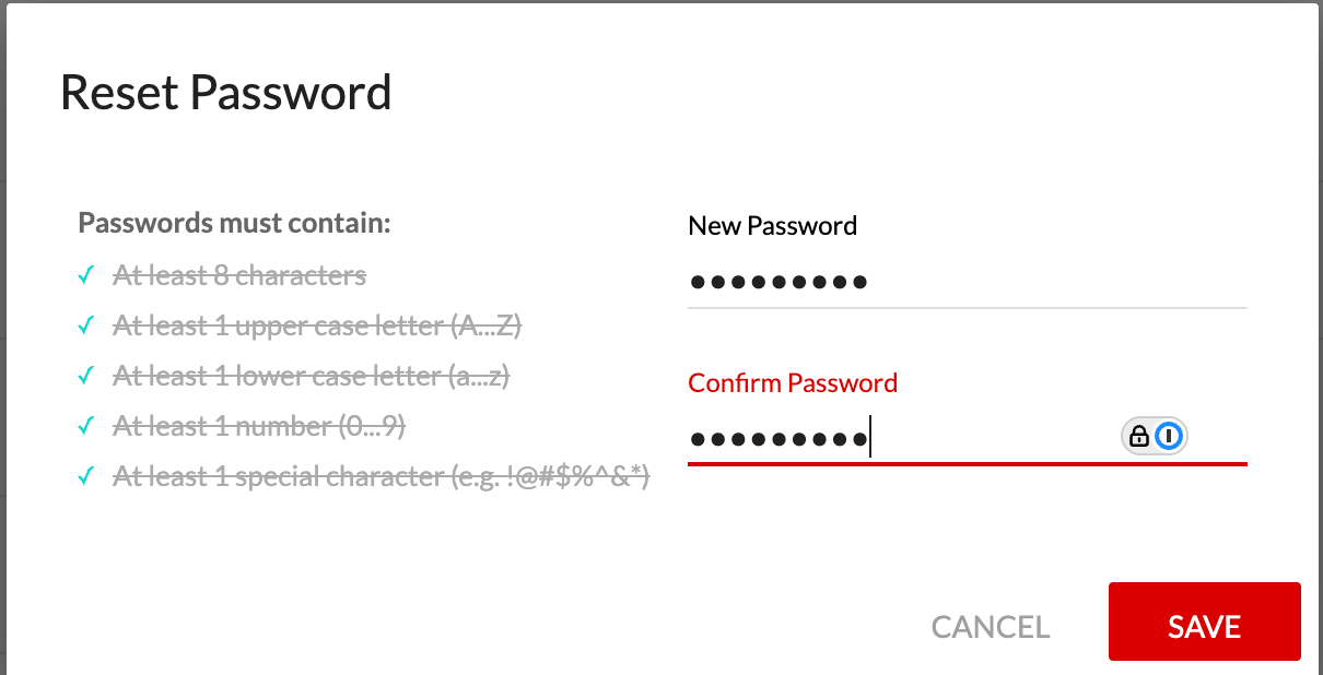 - Click on the Reset Password Button. This will bring up the Reset Password Pop-up.