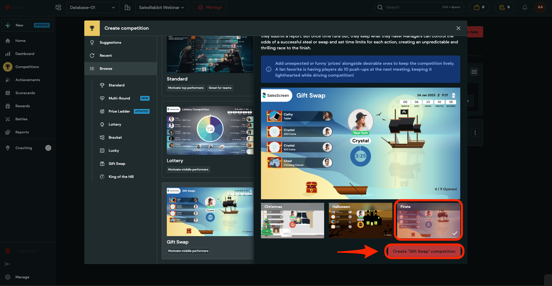 - Choose a pirate-themed layout for the competition's display on TV monitors (pick whatever theme fits your competition the best from the options).