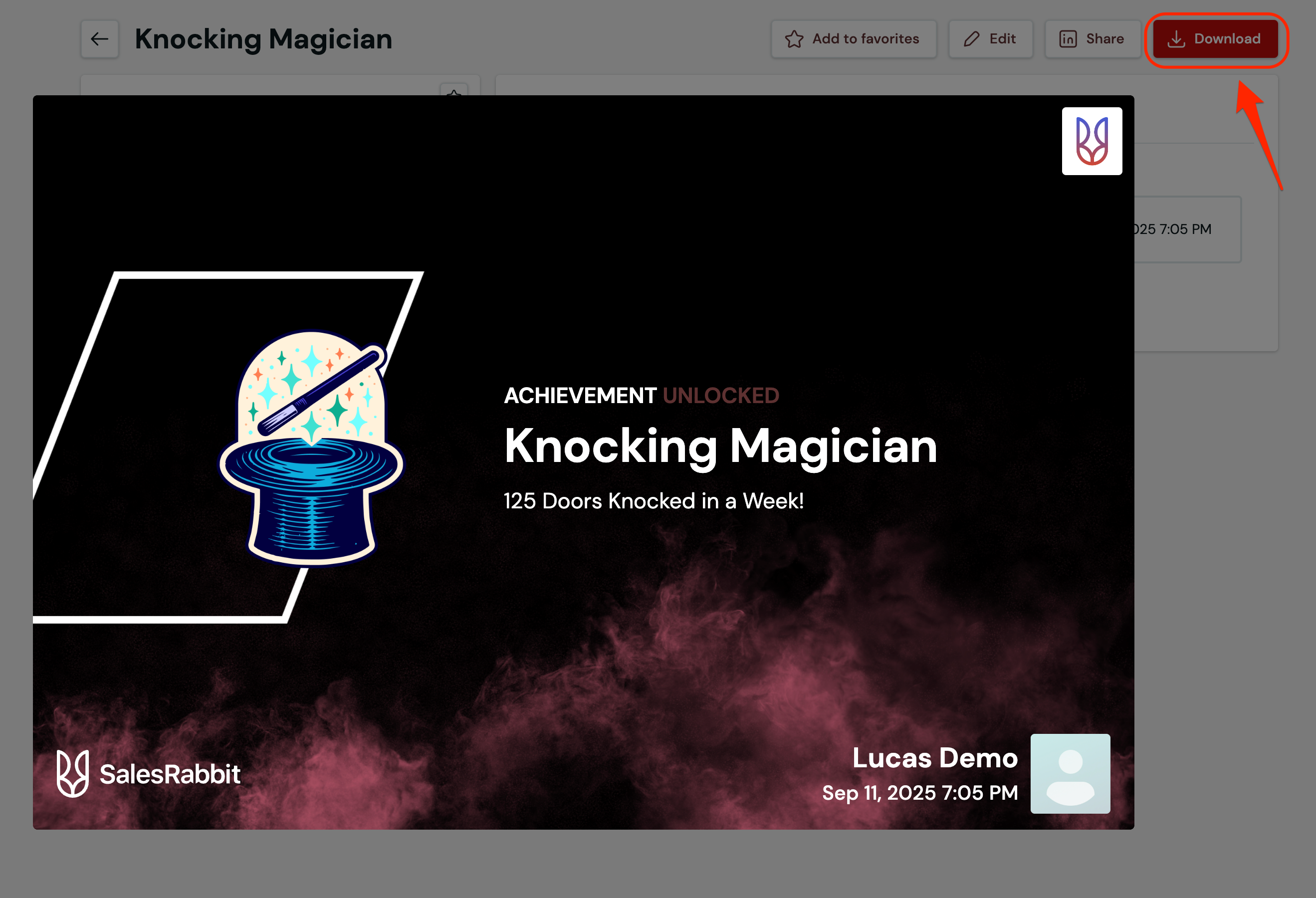 - The achievement image for sharing can also be downloaded and posted elsewhere. It will be saved as a .png file in your downloads folder.