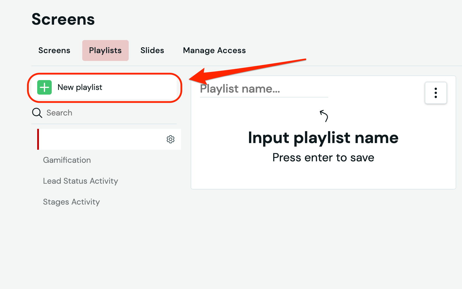 Once on the Playlists management page, click on the + New Playlist button on the left side: