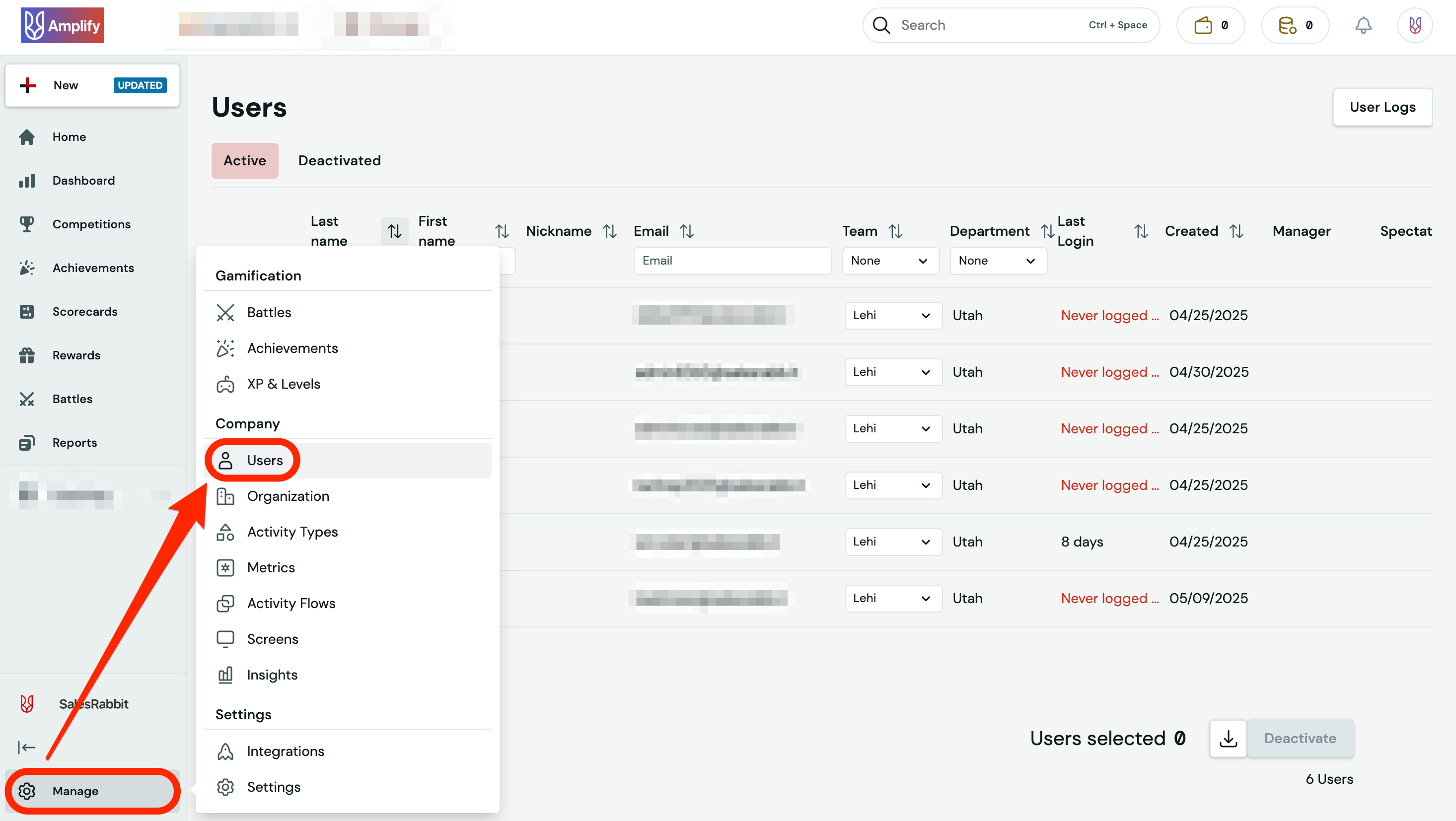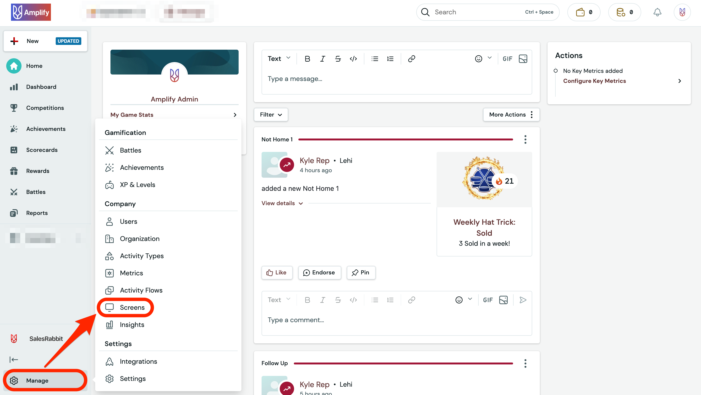 - From Amplify on the Web, click the "Manage" button at the bottom left corner.