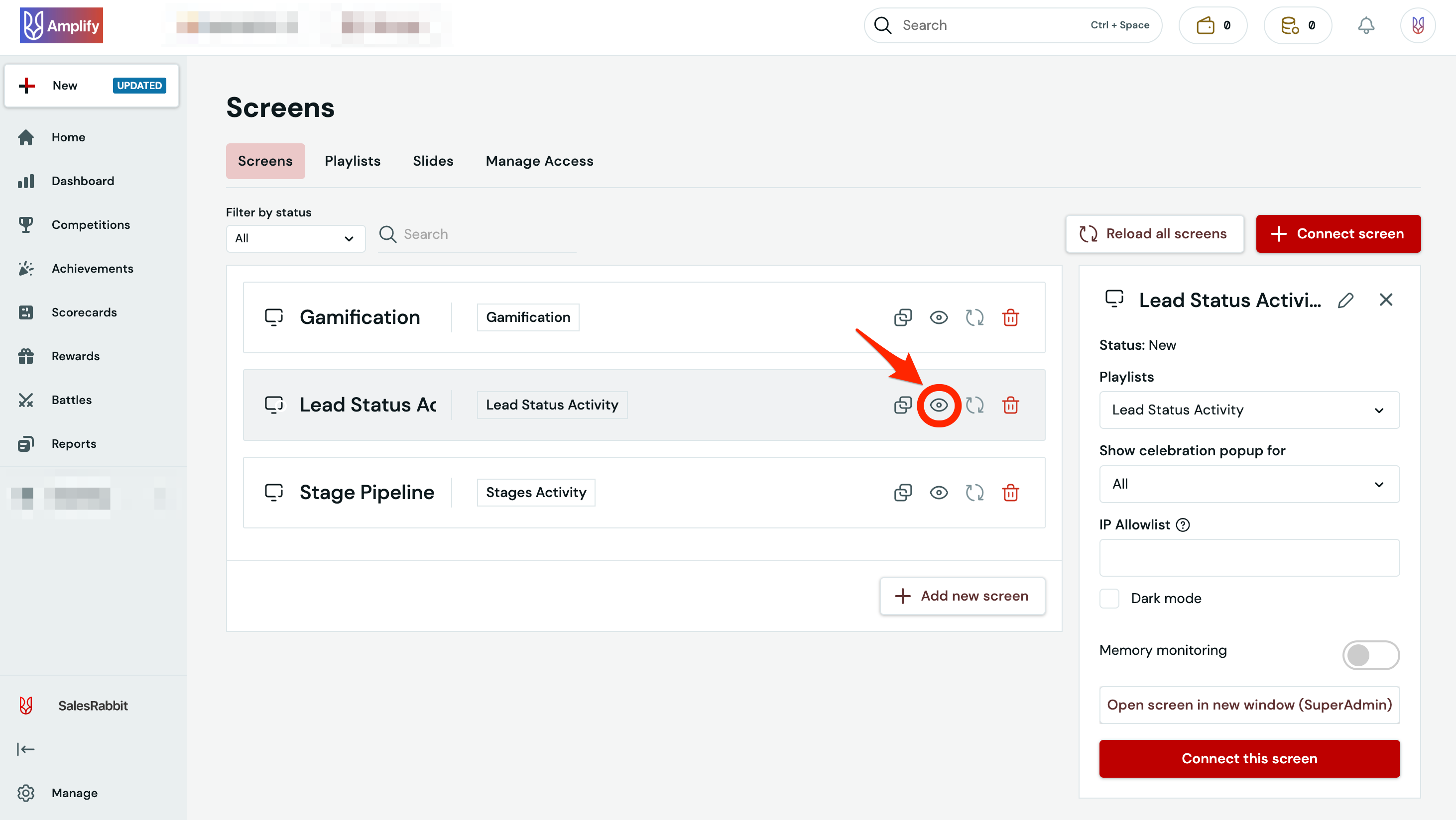 - Under the "Screens" management page, locate your desired screen and select your desired screen.