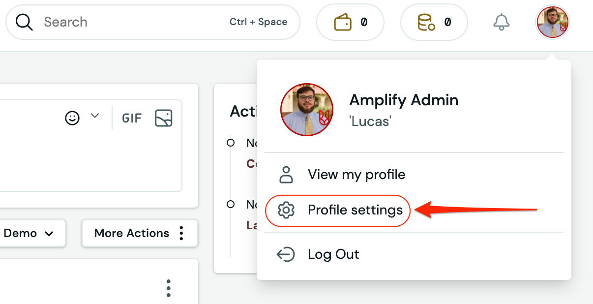- First, open the dropdown menu in the top right corner and click on profile settings.