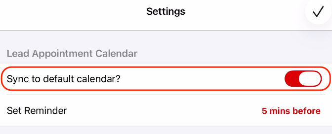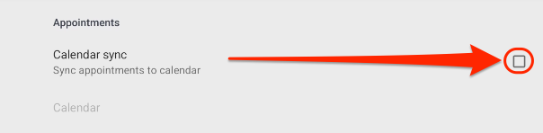 - Toggling on the "Sync to default calendar?"(iOS) or "Calendar Sync"(Android) in the Settings menu will sync your appointments to the default calendar on your device (can be any calendar type as long as it is the default calendar of your device in device settings).