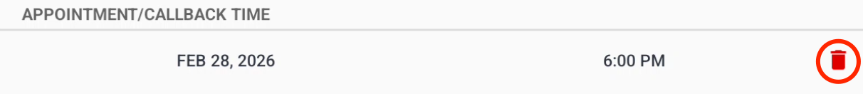- A trash can icon will appear next to the date and time (this means that your appointment has been set and saved).